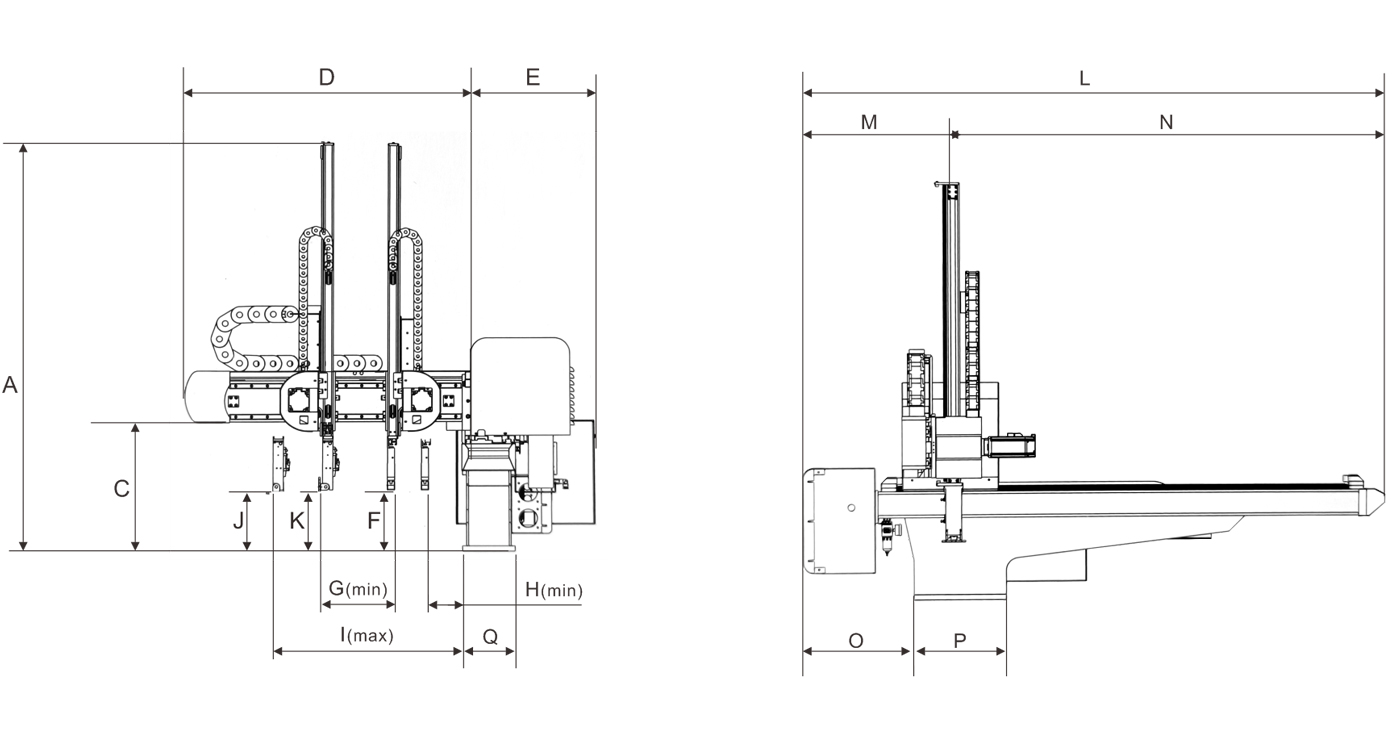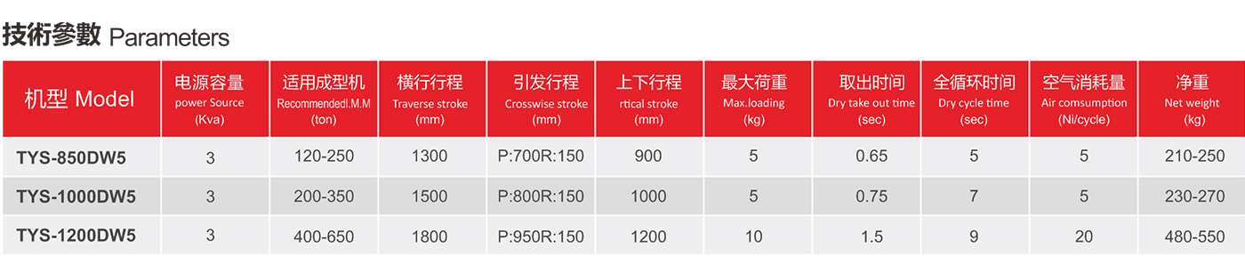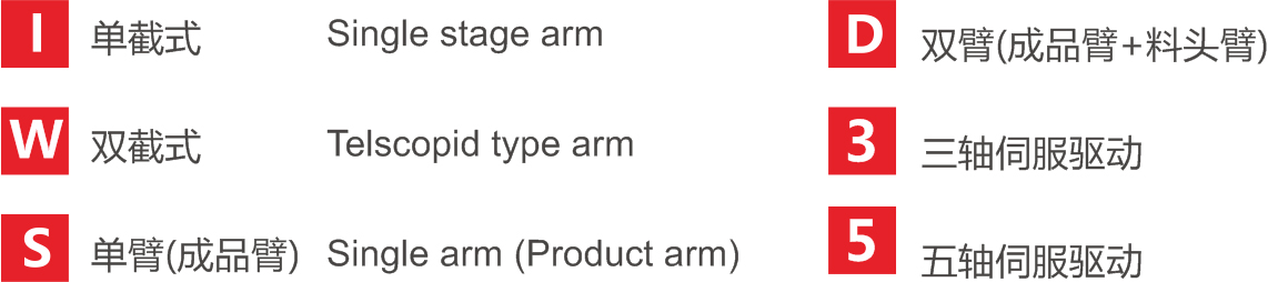 TYS系列標配為雙截單邊式1、伺服驅動優點:調試方便,運行速度快、動作平穩,使用壽命長。2、雙截式優點:減低機械手的整機高度,動作穩定性好,手臂上下速度快。3、引拔(單邊式/框架式)